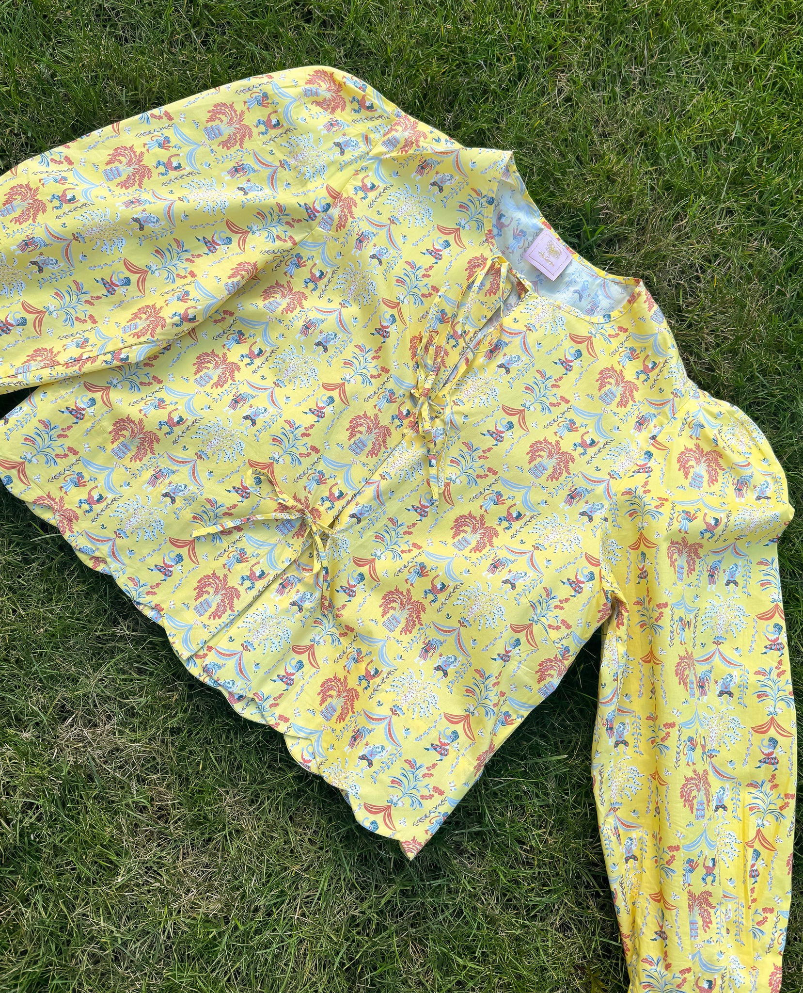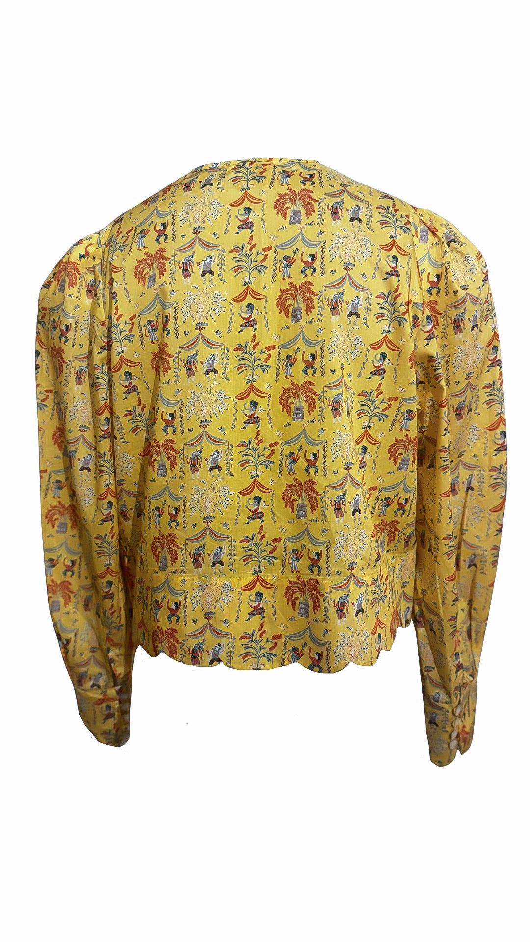 The Paula Blouse, has a very cool and versatile fit with gorgeous scalops, it is one of our most beautiful pieces this Fall. Made of a stunning Liberty Print in shades of yellow. This Blouse is a perfect classic addition in your wardrobe. Style her with a maxi skirt or corduroy brown trousers and chocolate brown sued boots. Model is 173cm and is wearing size XS (UK8), fit is true to size.