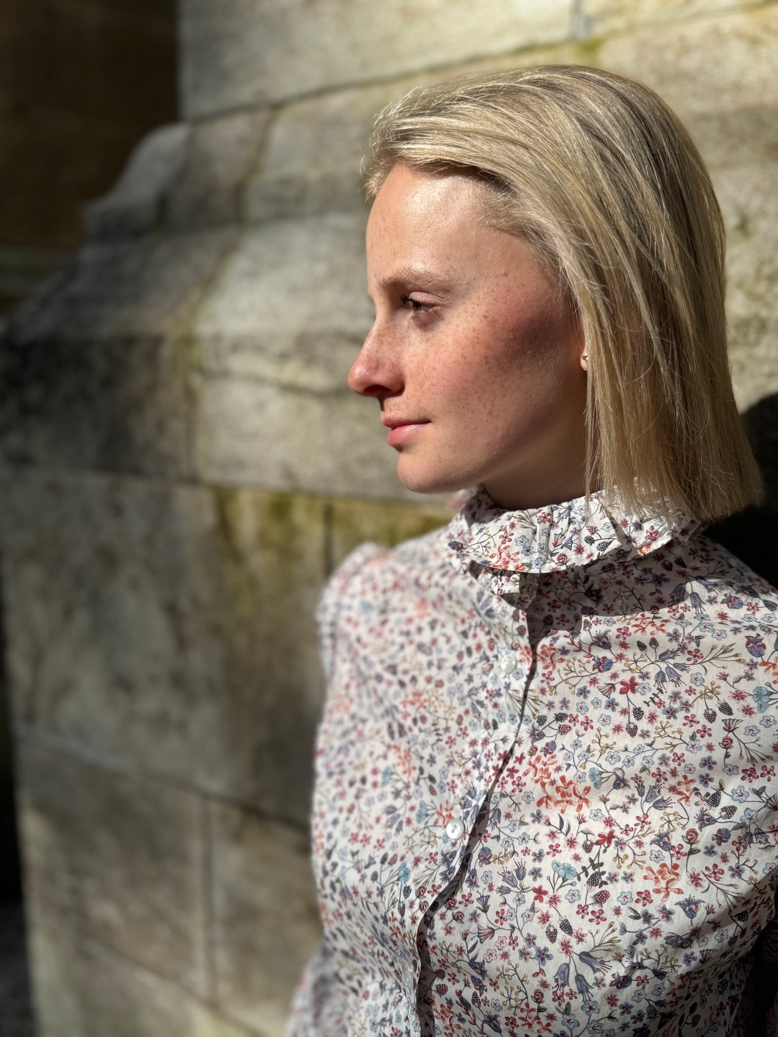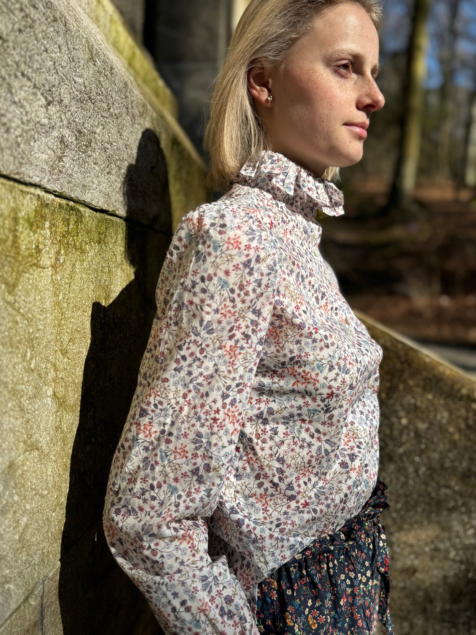 The Elba blouse, our signature piece was inspired by the victorian era. With a romantic touch and a flattering high neck collar as puffed sleeves. Made of 100% Liberty Cotton. The fabric feels like silk and the flower print is so timeless. Style our gorgeous Elba with some blue jeans for a cool color contrast. Handcrafted in our Bavarian Studio.